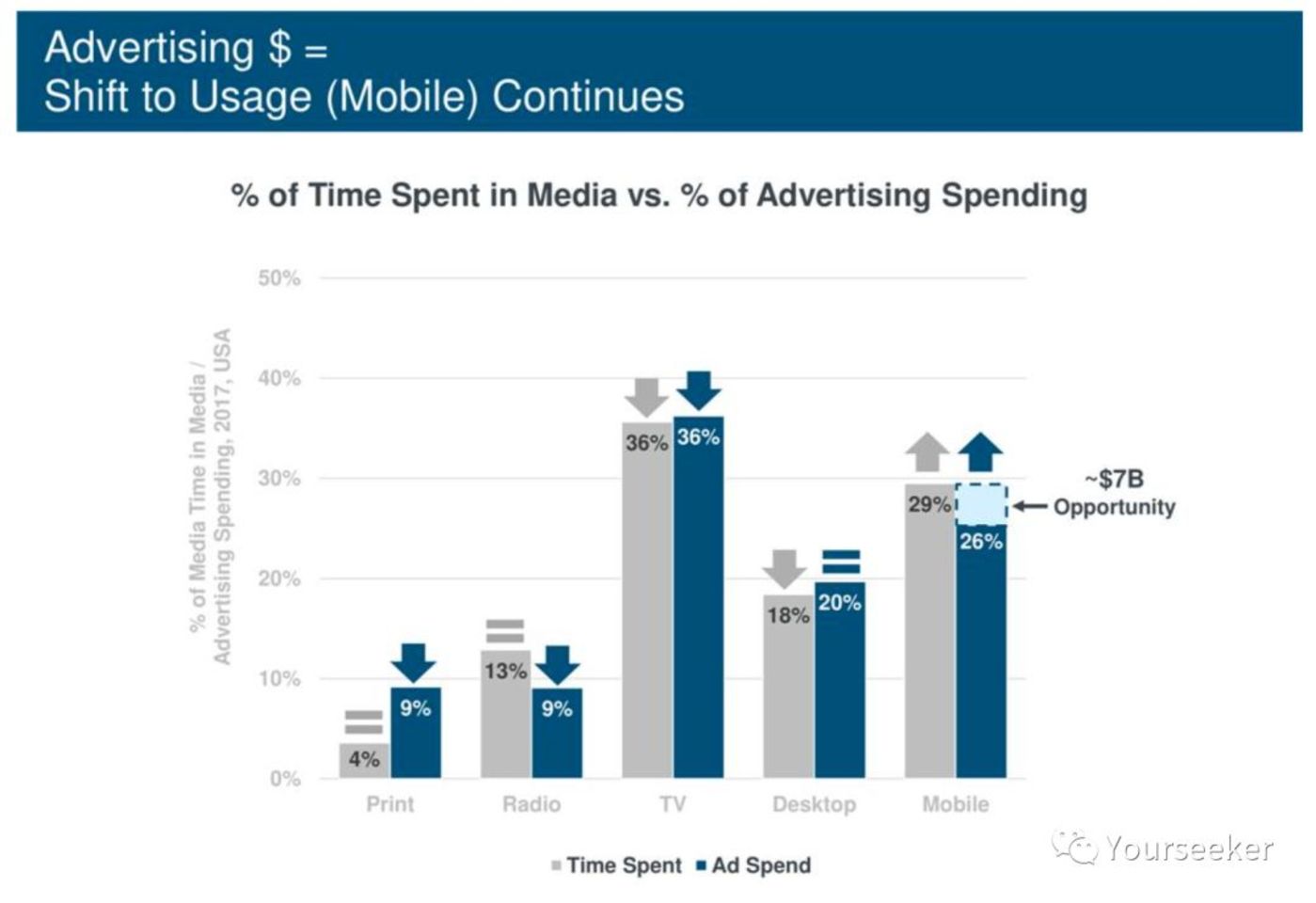 Mary Meeker 认为,2005 年前后,消费者在互联网上所消费的时间和注意力,远远超过了他们为此真正付出的广告成本。换句话说,当时的互联网广告市场大有潜力可挖。